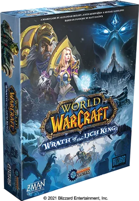 In this epic adventure from the World of Warcraft® universe, players will journey to the frozen continent of Northrend to face the armies of the Lich King. This Pandemic System game showcases familiar mechanics and gameplay, now tweaked to embrace the setting of the Wrath of the Lich King. Forts, temples, battlegrounds, and more populate the game board as you and your fellow heroes journey across the cold landscape. Along the way, you’ll set up strongholds, complete quests, and do battle with legions of undead.